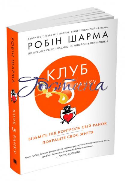 Що може бути спільного у молодої підприємниці на межі відчаю та художника, який переживає застій у творчості? Випадкова, здавалося б, зустріч на лекції визнаного в усьому світі духовного наставника з екс-центричним, проте вельми красномовним безхатьком кардинально змі-нить їхні життя.Історія розвитку справжніх особистостей, що розгортається у різ-них мальовничих куточках світу, крок за кроком познайомить читачів цього видання із надзвичайною важливістю ранніх підйомів та ефектив-ного планування дня, котрі здатні революційно змінити якість життя кожного. Метод, розроблений Робіном Шармою, успішно застосову-ють видатні підприємці, зірки шоу-бізнесу та найталановитіші митці, і їхній приклад лише доводить дієвість цієї програми. Тож якщо ви хо-чете взяти під контроль свій ранок та покращити своє життя, ця книж-ка — те, що вам потрібно.