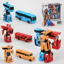 Головна особливість моделі - варіативність складання. Набір можна скласти в одного великого робота, а також грати кожною моделлю міського транспорту окремо, адже кожен автобус це невеликий робот-трансформер.