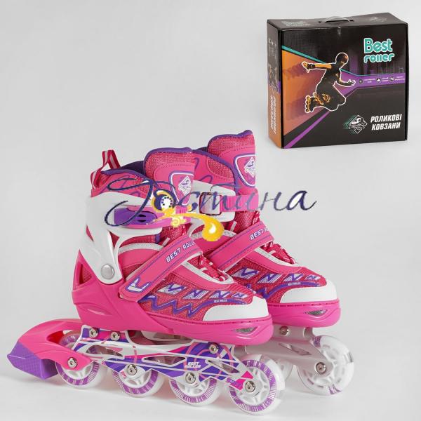 Ролики 33169-L Best Roller /розмір 38-42/ (6) РОЖЕВИЙ, колеса PU, ПЕРЕДНЄ КОЛЕСО ЗІ СВІТЛОМ, d коліс – 7 см, в коробці