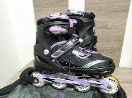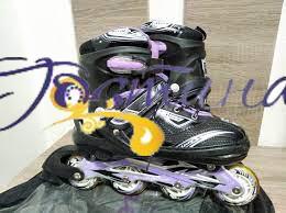 Стильні роликові ковзани з кольоровими колесами відрізняється своїм яскравим дизайном і характеристиками, що подобаються, які сприяють комфортному катанню. Завдяки комбінованому черевику нога дитини надійно фіксуватиметься в ньому. Його жорсткість не дасть їй маневрувати, забезпечивши цим легкість в управлінні, а м'який сітчастий матеріал захистить ногу від пошкоджень і дозволить їй дихати. Функція кнопкового регулювання розміру робить ролики універсальними. Це допоможе використати їх довгостроково. Розрахована ця модель на 4 розміри. Висувна система дозволить використовувати одну пару роликів у процесі зростання ноги дитини. Початковий розмір при цьому підійде для ніжки з приблизною довжиною стопи 21,5 см. Устілки в комплекті немає. Кнопковий регулятор надійно зафіксує необхідний розмір в одному положенні і не даватиме йому розсуватися під час катання. Фіксація роликів на нозі досить надія і здійснюється за допомогою пластикової баклі, шнурівки та ременя на липучці. Колеса з поліуретану на підшипниках сприяють плавній, швидкісній та практично безшумній їзді. Переднє колесо роликів при цьому підсвічуватиметься кольоровими вогниками. Характеристики: Тип: розсувні Матеріал коліс – поліуретан