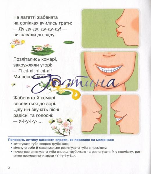 Пропонований посібник із серії розвивально-ігрових видань «Логопедична майстерня» містить віршовані тексти різної тематики та добірку вправ, спрямованих на вироблення правильної артикуляції у дітей дошкільного віку. Адже від того, наскільки злагоджено працюють органи мовлення, залежить виразність і чіткість вимови, а згодом — і грамотність письма. Виконання поданого в посібнику комплексу артикуляційної гімнастики одночасно із промовлянням веселих віршиків допоможе стимулювати розвиток фонематичного слуху та зв’язного мовлення у малюків, запобігти мовленнєвим порушенням, тренувати увагу, пам’ять, спостережливість та уяву. Посібник можна використовувати як для індивідуальних, так і для групових занять. Цікавим доповненням є вкладка з наліпками, завдяки яким дитина зможе створити повну картинку відповідно до тематики віршів на кожному розвороті. Для дітей від 3-х років, вихователів, логопедів і турботливих батьків.