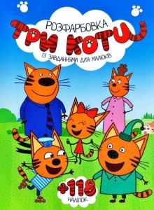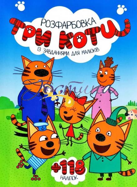 Розмальовка з завданнями для малюків 118 наліпок А4: Три Кота