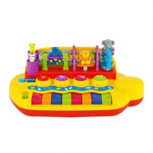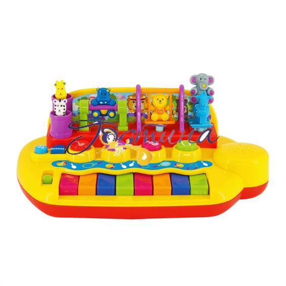 На ігровій панелі розташовані фігурки тварин, які весело рухаються, коли малюк грає на піаніно або слухає пісні чи мелодії.