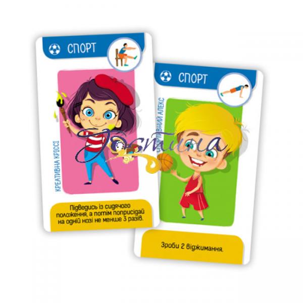 За допомогою цих карток діти зможуть проявити фантазію, розвинути логіку, поділитися історіями й навіть потренуватися. У компанії Спортивного Алекса, Втомленої Моні, Веселої Віллі та інших кумедних персонажів вони із задоволенням виконуватимуть різні завдання.