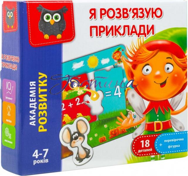 Розкладіть усі деталі перед дитиною. З одного боку покладіть картинки, а з іншого — цифри. Нехай малюк уважно їх розгляне, а потім підбере пару до кожного малюнка. Для цього потрібно розв'язати приклади на кожній картинці. Коли зображення буде складене, перевірте його за допомогою спеціальної фігурки. Якщо миша поміщається всередину пазла, отже, усе підраховано правильно. Так дитина в цікавій ігровій формі запам'ятає цифри від 1 до 9 і навчиться розв'язувати прості приклади. Гра також розвиває логічне мислення, пам'ять, дрібну моторику та математичні навички.