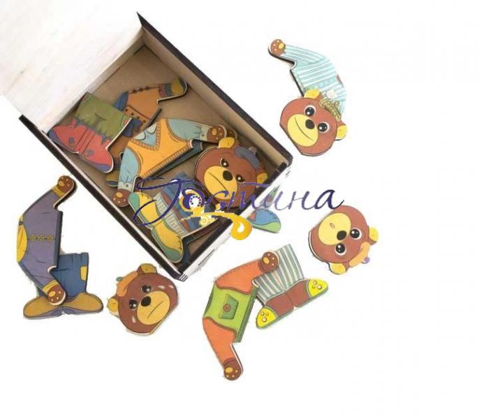 Іграшка навчить дітей збирати пазл і підбирати одяг за кольором, формою і орнаментом.