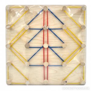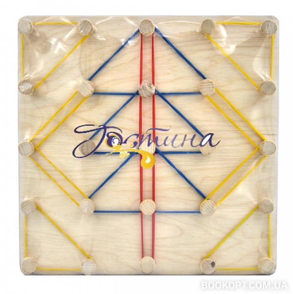 Гра являє собою дерев'яну основу з безліччю ручок, на які потрібно надягати резиночки для отримання конкретного малюнка, букви або цифри. Математичний планшет "Фантазуємо з резинками" – інноваційна іграшка для дітей, що старші 3-х років. На відміну від готових наборів і конструкторів, вона дає дитині можливість самостійно створювати геометричні фігури і узори. У набір входять кольорові гумки, які виступають своєрідним будівельним матеріалом для створення ромбів, прямокутників, трапецій, а дерев'яні "кнопки" (всього їх 25) виступають вершинами імпровізованих фігур. З математичним планшетом "Фантазуємо з резинками" можливості для вивчення основ геометрії практично безмежні. Іграшка розвиває у дитини просторове мислення, формує художній смак. Також математичний планшет сприяє психосенсомоторному, когнітивному (пізнавальному) розвитку, а також розвитку творчих здібностей. Розвиває пам'ять, координацію, уяву. Розвиток уяви, в свою чергу, сприятиме отриманню творчих результатів у всіх видах діяльності.