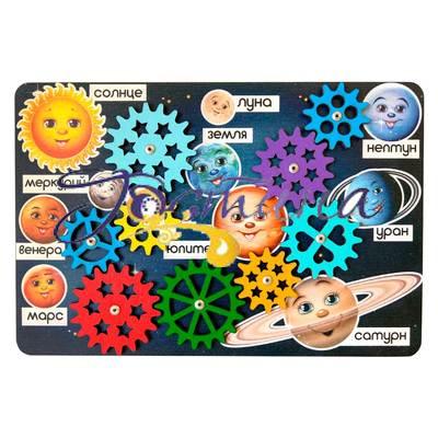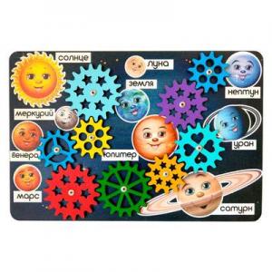 На картинці зображені планети, кожній з яких відповідає своя шестірня. Як тільки прикріпити їх на свої місця, вся система запрацює злагоджено.