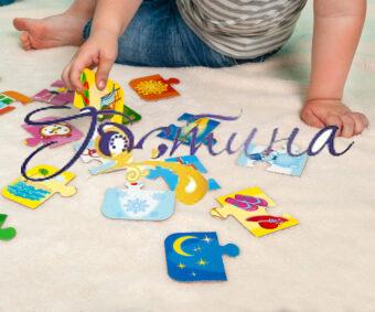 Розкладіть усі деталі перед дитиною. Нехай малюк їх уважно роздивиться. Попросіть знайти такі малюнки, на яких зображено характерні особливості, наприклад, зими. Шукаємо сніжинки, сніговика та санчата. Готово! Складіть таким чином усі пазли-трійнята, повторюючи назви сезонів та часу доби, зображених на малюнках.