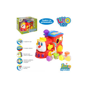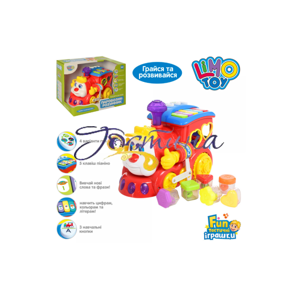 Розвиток: зверху на паровозику є піаніно і 4 кнопки зі звуками.