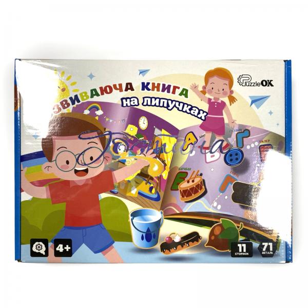 Розвиваюча книга з елементами на липучках украънського виробника PuzzleOk - чудовий ігровий посібник для розвитку та дозвілля малюків.