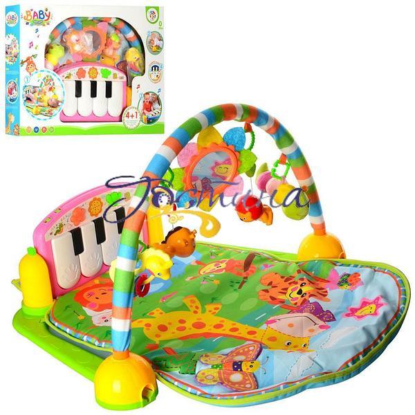 Представляємо Вашій увазі захоплюючий Килимок для малюка РА318 з дугою, підвісками 5 шт, піаніно, музикою, світлом, на батарейках!