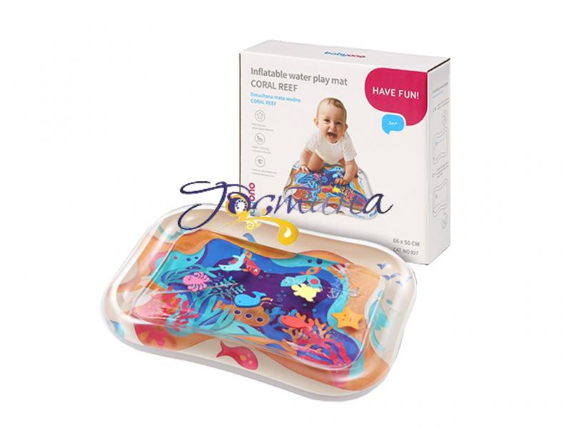 Сенсорний водний килимок – це не тільки відмінна розвага для вашої дитини, але й ефективне навчання. Маля змінює становище, спостерігаючи за тим, як різнокольорові фігури рухаються у воді. Таким чином, він тренує рівновагу та рух. Килимок легко наповнити повітрям та водою, а коли час гри закінчиться, його можна випорожнити та згорнути в рулон. У виробу є ще одна перевага – його можна використовувати для заспокоєння болів у животику. Налийте всередину теплу воду і покладіть малюка на килимок. Технічні характеристики - Матеріал: ПВХ - Вага: 20 грам. - Розмір 66x50 см. - Вік дитини: 3м+