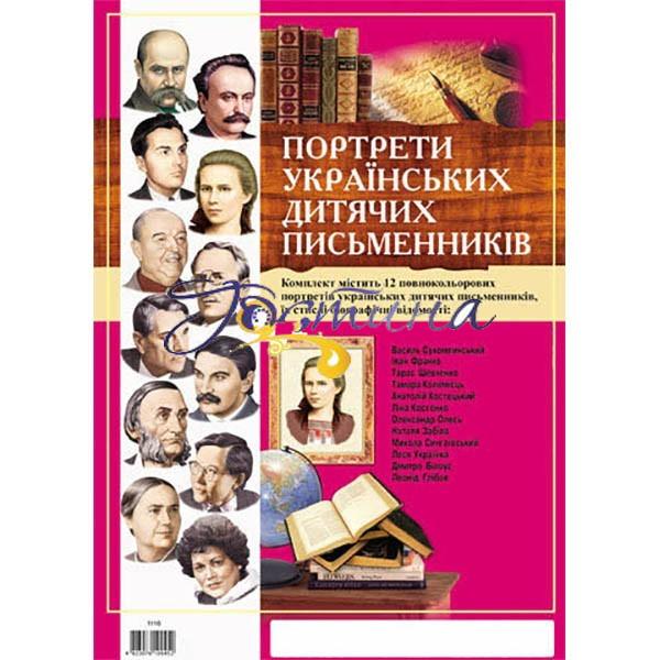 До комплекту входять історичні портрети: Василя Сухомлинського, Івана Франка, Тараса Шевченка, Тамари Коломієць, Ліни Костенко, Олександра Олеся, Наталії Забіли, Миколи Сінгаївського, Лесі Українки, Дмитра Білоуса, Леоніда Глібова .У комплекті міститься 12 портретів українських дитячих письменників і їх короткі біографічні відомості.