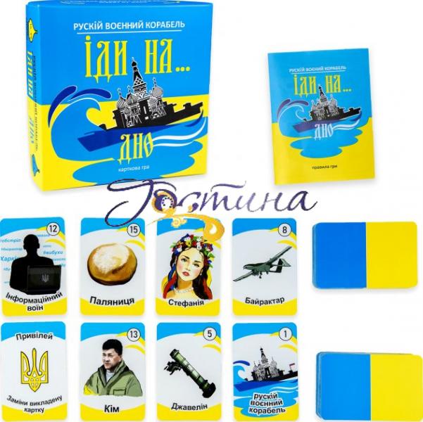 У цій картковій грі Рускій воєнний корабель, іди на... дно компанія Strateg пропонує перебити ворожий корабель та виграти бої за допомогою Байрактарів, Конотопських відьом, Волонтерів та інших. Для цього знадобиться ваша пам'ять, увага та компанія друзів.