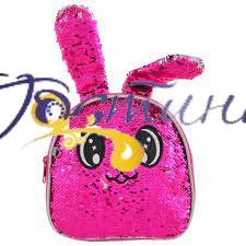 Дитячий рюкзачок ідеально підійде для маленької принцеси. Рюкзак обсипаний паєтками, має форму зайчика. Таким модний аксекссуар легко помістяться дитячі речі.