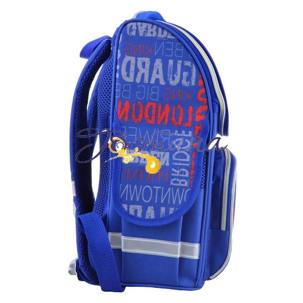Каркасний шкільний рюкзак з пластиковими елементами, що забезпечують жорсткість зі spini та з боковин. В основному відділенні наявні рухомі роздільники з еластичною стрічкою. На передній панелі ранця об'єднання ємна кишеня. Також є бокові кишені для пляшечки з водою або інших дрібниць. Широкі та зручні лямки, що що що регулюються S-подібної форми. Дно ранця укріплене додатково пластиковою вставкою. Ранець можна праті у пральній машині. Додатково: водовідштовхувальний, світловідбивачі - 6 шт.
