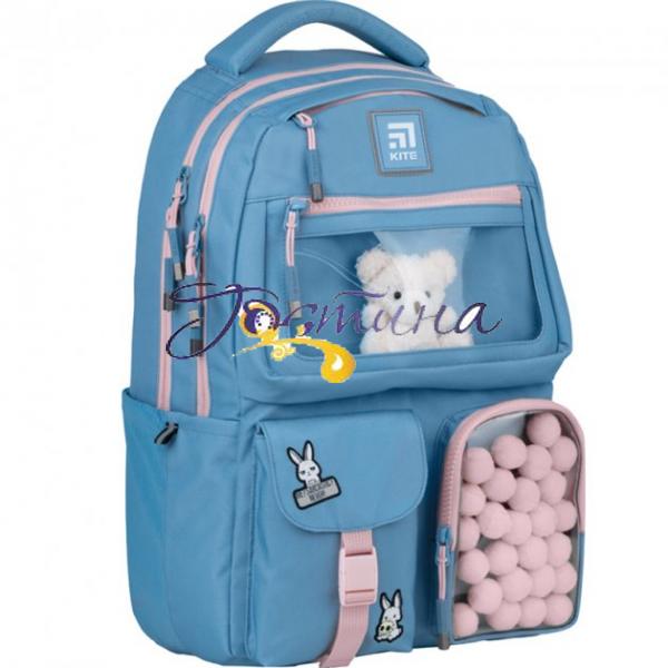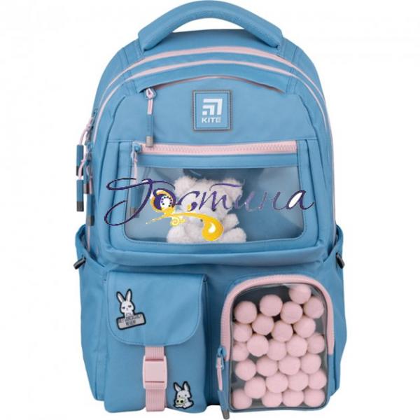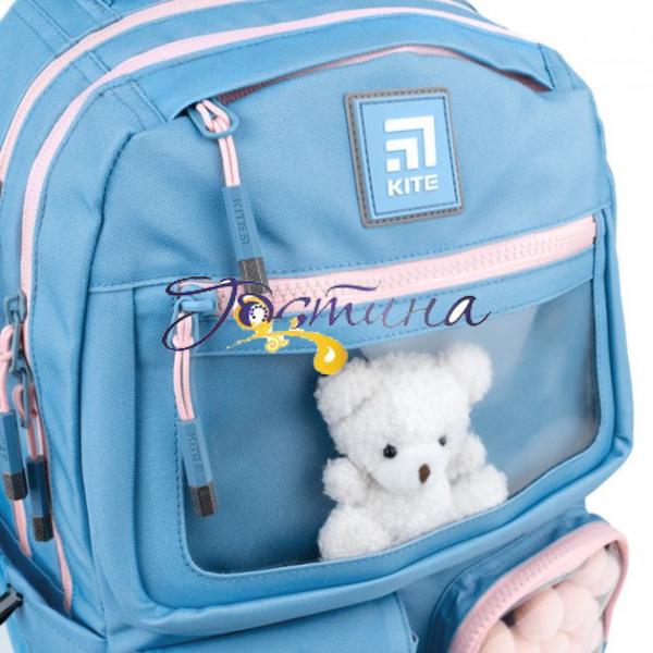 Рюкзак Kite виконаний із міцного поліестеру. Мила, славна і неймовірно гарна модель у популярній японській естетиці kawaii. Рюкзачок зачаровує ніжністю колірних поєднань та чарівним декором, який не залишить байдужою жодну дівчинку-підлітка. З прозорої кишеньки виглядає няшне біле ведмежа, а сусіднє «віконце» наповнене розсипом м'яких помпонів, яких так і хочеться пожмякати.