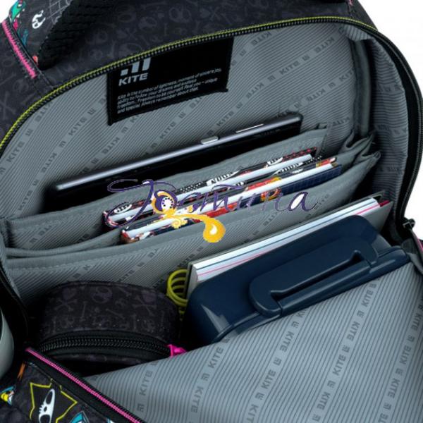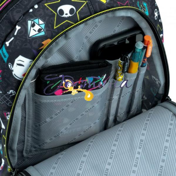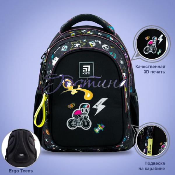 Рюкзак Kite TK22-8001M-1 – стильна ортопедична модель із міцного поліестеру. Продумана організація внутрішнього простору, приголомшлива ємність та трендовий дизайн у популярній молодіжній ліцензії tokidoki. Втілення комфорту та бездоганної німецької якості. Цей рюкзак незамінний для школи, екскурсій, поїздок, прогулянок та дозвілля. Завдяки безлічі зручних відділень та кишень кожна річ буде на своєму місці. Ортопедична конструкція подбає про комфорт та здоров'я спини. Подарунок на рюкзак – стильний брендовий бафф Kite! Модель рекомендована для підлітків 9-12 років на зріст 130-145 см. Рюкзак Kite TK22-8001M-1 зовні: Запатентована ортопедична спинка Ergo Teens з м'якими подушечками, що дихають - розроблена спеціально для підлітків середнього і старшого шкільного віку. Повторює природні вигини хребта, щільно прилягає та знижує навантаження на спину; Широкі вентильовані лямки S-подібної форми м'яко лягають на плечі, не тиснуть і не натирають; Знімний нагрудний ремінь фіксує лямки у зручному положенні, бере участь у правильному рівномірному розподілі ваги; Велика передня кишеня, всередині якої розташований органайзер для канцелярських дрібниць, знімна ключниця та кишеня для телефону з флісом, що захищає екран; 2 бічні кишені з сіточкою на гумці, в яких зручно розміщувати пляшечку з водою або невеликий термос; М'яка ущільнена ручка-перенесення з EVA всередині; Текстильна петля для підвішування рюкзака на гачок; Посилене дно для практичності та стійкості; Високоякісна фурнітура - надійні блискавки з масивними пулерами працюють плавно; Світловідбивні елементи – щоб дитина була помітна на дорозі у темний час доби; Декор: текстильна нашивка, підвіска на карабіні. Рюкзак Kite TK22-8001M-1 всередині: 2 просторі основні відділення; Кишеня для ноутбука; Кишеня для планшета із флісом для захисту екрану; Міцна брендована підкладка; Іконки внутрішньої навігації, що нагадують призначення кожної кишені. До рюкзака ідеально підходить пенал Kite TK22-599-1 у цьому ж дизайні. Матеріали та фурнітура пройшли випробування на міцність та зносостійкість. Тканина не вигоряє та довго зберігає первісний вигляд. Блискавки – якісні та надійні, працюють плавно.