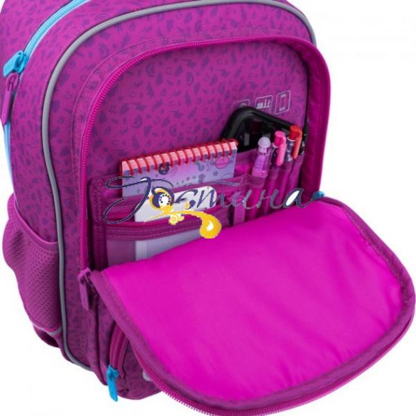 Модель з максимальною кількістю кишень: 3 внутрішніх, 2 бічних, 2 фронтальних та 1 потаємної. Продумана організація внутрішнього простору – гарантія бездоганного порядку та акуратного зберігання шкільного приладдя. Все красиво і «по поличках»: для кожного канцелярського предмета – своє місце.