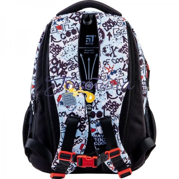 Ортопедична спинка Air Comfort, 1 відділення, 2 передні і 2 бічні кишені, кишеня в спинці, надійні блискавки і фурнітура, м'яка ущільнена ручка, ручка-петля, внутрішні розділювачі, відділення для планшета, кишеня для телефону, органайзер, ключниця, нагрудні з’ємні ремені, світловідбиваючі елементи.