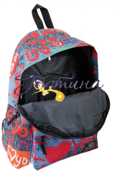 Яскравий і стильний молодіжний рюкзак на одне відділення. Всередині - кишеня на блискавці і кишеню для мобільного телефону. Водовідштовхувальна тканина - поліестер. Розміри: 31х41х14 див.