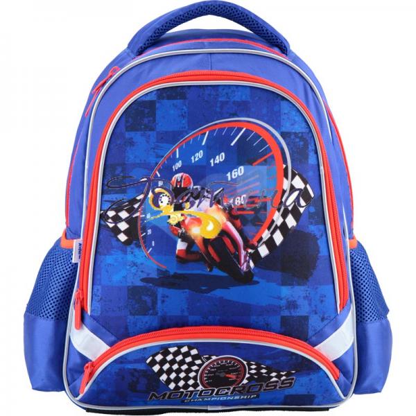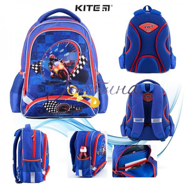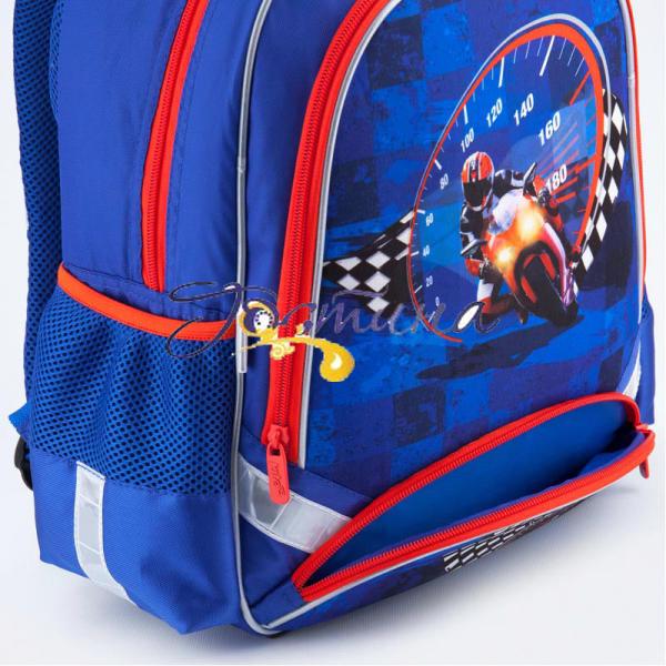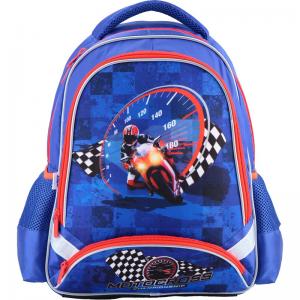 Рюкзак Kite K18-517S з поліестеру синього кольору із зображенням гоночного мотоцикла.