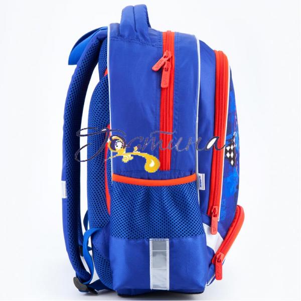 2 відділення, 1 передня і 2 бокові кишені, Ортопедична спинка Ergo Kids, м'яка ущільнена ручка, внутрішніх перегородок, кольорова підкладка, надійні замки, посилене дно,світловідбиваючі елементи.