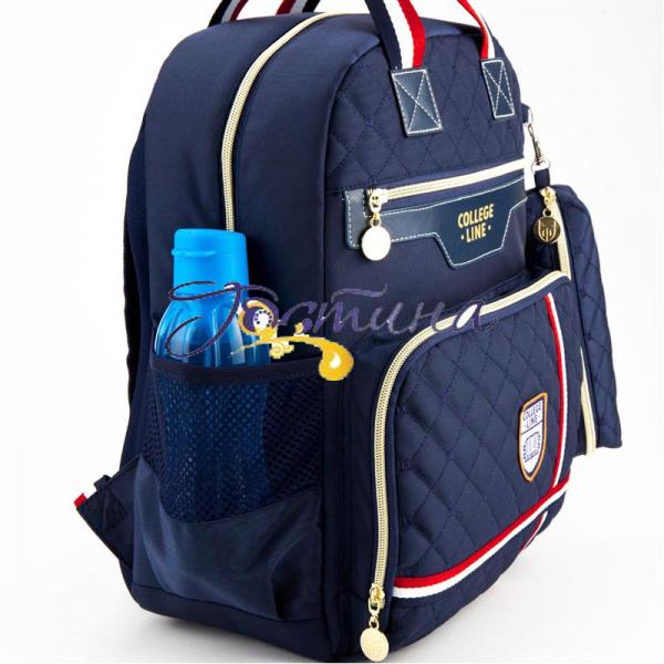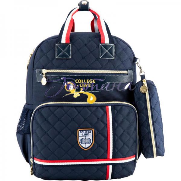 Рюкзак College Line-2 виконаний з поліестеру синього кольору із зображенням емблеми Коледж лайн. Модель рюкзака розроблена спеціально для стильних школярів, які люблять витончені класичні форми і стриманий функціональний дизайн. До рюкзаку в подарунок йде зручний пенал в тон, який пристебнутий до виробу на карабіні.