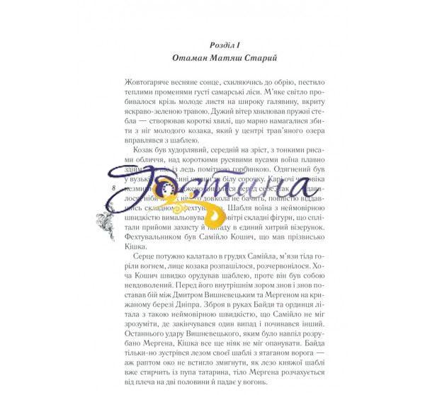 Усе почалося того дня в густих самарських лісах. Юний козак вів свій танок у центрі трав’яного озера, вправляючись із шаблею. Його зброя з неймовірною швидкістю вимальовувала в повітрі складні фігури. Уже тоді він окреслив лезом шаблі власну долю. Ще не знаючи, що стане козаком-легендою, здобуде безліч перемог, здійснить перші морські походи проти Кримського ханства та Османської імперії, відбудує Січ… І закохається до нестями, загубившись у власних почуттях… А наразі сонце грало на шаблі молодого Кошича. Незабаром світ дізнається про нього як про славнозвісного Самійла Кішку.