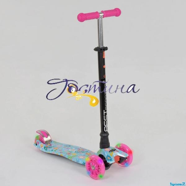 Триколісний самокат з колесами що світяться від "Best Scooter" призначений для маленьких любителів активного відпочинку. Яскравий дизайн даної моделі з першого погляду приверне увагу малюка і стане улюбленим транспортним засобом!