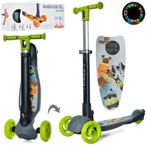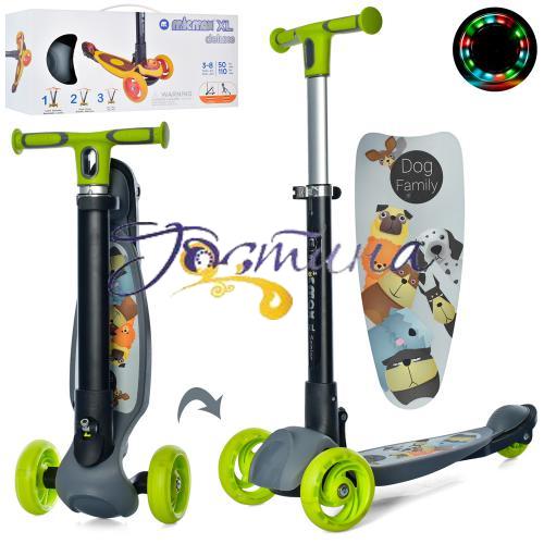 Тип самокату: самокат-скутер Кількість коліс: 3 поліуритан Складана конструкція: складаний 2 передні колеса: 120 мм заднє колесо: 70 мм підніжка 29-13 см матеріал сталь + алюміній