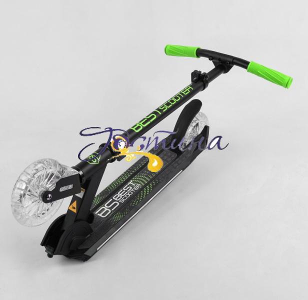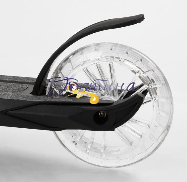 Яскравий дитячий перший двоколісний самокат із колесами, що світяться, і платформою. Підійде райдерам від 4 років і до 12 за рахунок щільного складання, надійної системи складання та вантажопідйомності до 70 кг.