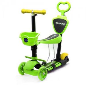 Скутер з батьківською ручкою, спинкою і кошиком.