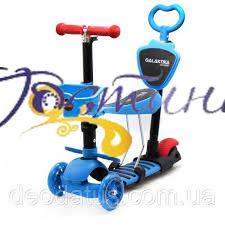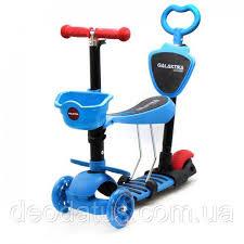 Самокат біговел дитячий триколісний Galaktika GS-0081 5 в 1 з батьківською ручкою корзиною колеса світяться