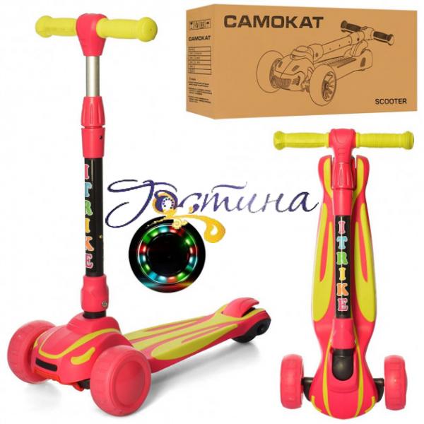 колеса 3 шт ПУ (поліуретан), 2 передніх 120 мм-світяться, кермо 67/80 см, платформа 39-13 см, складаний