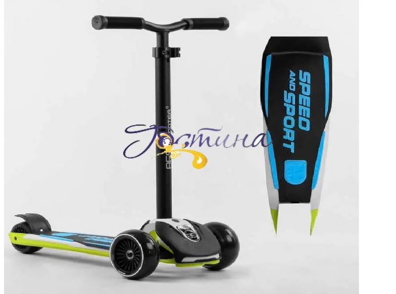 Зовнішній вигляд самокату нагадує гоночний болід і не може не зацікавити дитину. Завдяки високому керму та міцному корпусу кататися на цій моделі можуть діти до 8 років та вагою до 70 кг.
