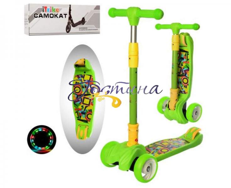 Дитячий Триколісний самокат Itrike JR 3-060-11-GR MAXI зелений – оснащений поліуретановими колесами для м'якої їзди по асфальту, з підсвічуванням, яке видно у нічний час доби. Дитина буде в захваті від миготливих світлодіодних вогнів, які горять сильніше при набиранні швидкості, а батьки не втратить на увазі юного гонщика. Кермо у дитячих самокатів регулюється за висотою, що дозволить використовувати транспортний засіб не 1 рік. При виборі самокату необхідно пам'ятати, що кермо має бути на такій висоті, щоб лікоть дитини був під кутом 90°. Дитячий Самокат JR 3-060-11-GR MAXI стане чудовим подарунком для активної дитини під час прогулянок. Стильний та сучасний дизайн самокату виконаний із міцного ударостійкого пластику, який витримує велику вагу. Самокат – це дитячий транспорт пересування, який тренує м'язи ніг, спини та замінює кардіотренування. Характеристики дитячого триколісного самокату Itrike JR 3-060-11-GR MAXI: Підсвічування коліс: є Висота керма регулюється: min – 67 см / Max – 79 см Гальмо: ножний
