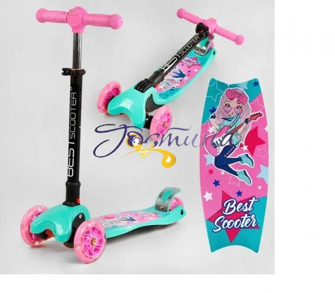 Триколісний самокат Best Scooter в стильному оформленні з відмінними характеристиками і яскравими колесами, що світяться - все, що необхідно для активного відпочинку дитини!