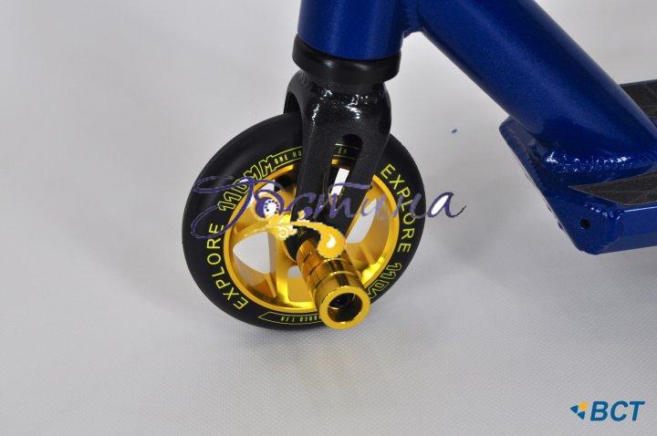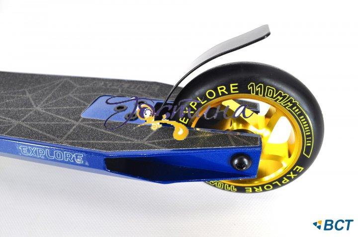 Самокат для трюків EXPLORE STORM – модель 2020 року від торгової марки EXPLORE. Скутер має просту і надійну конструкцію, яка дозволяє витримувати великі навантаження. Самокат оснащений прогумованими широкими гофрованими ручками довжиною 120 мм, що дозволяє надійно утримувати кермо під час трюків. Заднє крило виконує функцію гальма і дає можливість контролювати швидкість.Самокат для трюків EXPLORE STORM з металевої маточиною коліс і надійною системою компресії HIC прослужить довго. Колеса самоката діаметром 110 мм, виготовлені з поліуретану, забезпечують комфортне катання, згладжуючи нерівності покриття і поглинаючи вібрацію. Підшипники - Abec 9 дозволяють швидко набрати швидкість. Самокат трюкової EXPLORE STORM ідеально підійде дитині 8-18 років.ОСОБЛИВОСТІ ТРЮКОВОГО САМОКАТА EXPLORE STORM:• алюмінієва рама;• протиковзке покриття;• кермо обертатися на 360 градусів;• прогумовані широкі ручки;• є межі для ковзання;• країна виробництва - Тайвань;• країна бренду - Канада.EXPLORE STORM ПІДХОДИТЬ:• мінімальний вік – 8-18 років• максимальне навантаження – 100 кгПАРАМЕТРЫ STORM:• вага самоката - 3.7 кг;• система компресії - HIC;• ширина керма - 470 мм;• висота керма від землі - 850 мм;• ширина деки - 110 мм;• довжина деки - 500 мм;• діаметр коліс – 110 мм;• підшипники - Abec 9; габарити коробки, мм - 670 / 470 / 120;• кліренс – 45 мм;• відстань від землі до верху деки – 58 мм. Поради по догляду за самокатом:Самокати для трюків EXPLORE були розроблені таким чином, щоб вимоги щодо догляду за ними були мінімальними. Для того щоб продовжити експлуатаційний період трюкового самоката, зверніть увагу на дану інформацію:Колеса самоката для трюків: перед використанням завжди перевіряйте колеса,щоб уникнути надмірного зносу. Зношені колеса небезпечні і мають бути замінені. При заміні коліс краще міняти обидва колеса.Підшипники трюкового самоката: очищайте підшипники від бруду після катання. Це збільшить їх експлуатаційний період. Не дозволяйте підшипників сохнути самим по собі; якщо вони намокли, їх треба ретельно витерти і змастити. Це продовжить термін служби трюкового самоката і забезпечить хороший накат.Осьові болти самоката трюкового: завжди перевіряйте, чи добре затягнуті осьові болти. Вони не повинні бути забруднені.Інші частини трюкового самоката : якщо якісь частини самоката для трюків зносяться і зламаються, їх потрібно негайно замінити