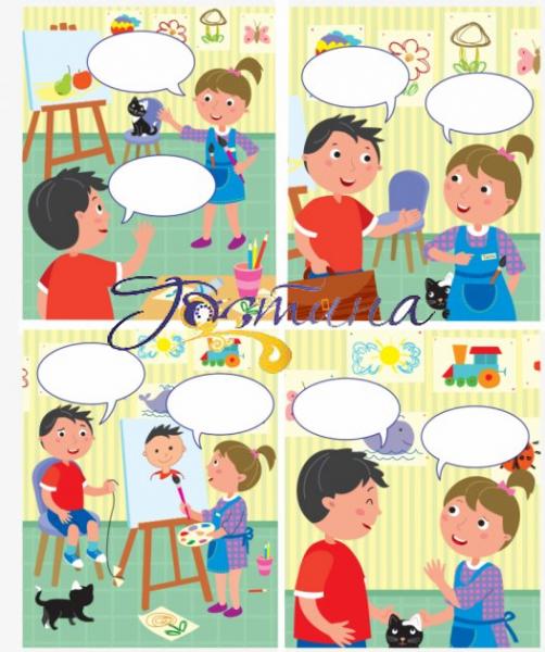 Дитина вже знає базові англійські слова? Самє годину вчитися будувати прості діалоги іноземною мовою! Із цим зошитом зробити це надзвичайно просто: 1. Читаємо або слухаємо діалог англійською мовою.2. Добираємо та розклеюємо репліки самостійно у схожій ситуації.3. Перевіряємо собі, увімкнувши аудіо.Лише потрібні фрази із повсякденного життя!