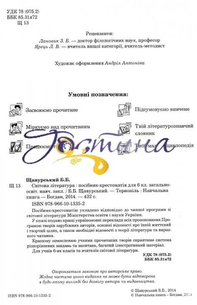 Посібник-хрестоматію укладено відповідно до чинної програми зі світової літератури Міністерства освіти і науки України.