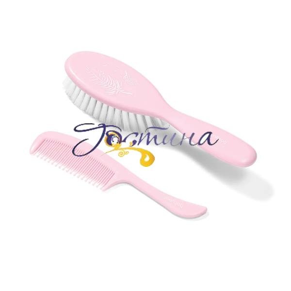 Набір включає гребінець із закругленими зубами, що не дратує шкіру дитини.