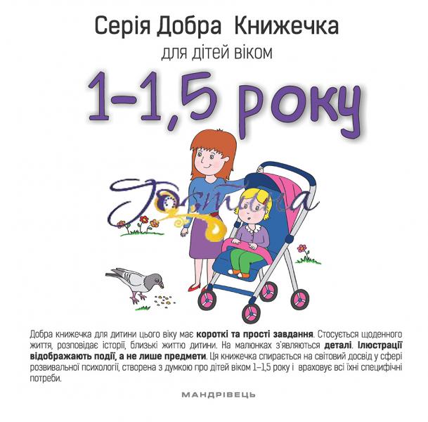 Добра книжечка для дитини цього віку має короткі та прості завдання. Стосується щоденного життя, розповідає історії, близькі життю дитини. На малюнках з’являються деталі. Ілюстрації відображають  події, а не лише предмети. Ця книжечка спирається на світовий досвід у сфері розвивальної психології, створена з думкою про дітей віком 1-1,5 року і враховує всі їхні специфічні потреби.