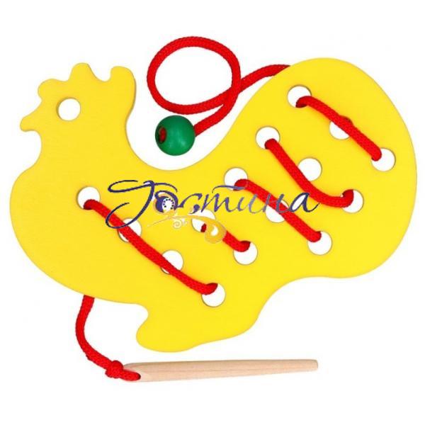 Дерев'яні шнурівки - міцні, приємні на дотик, довговічні та безпечні іграшки. А виконані у формі тварин - з перших секунд привертають увагу, стимулюючи дитячу уяву. Матеріал: дерево. Розміри: 21х15х0,6 см.