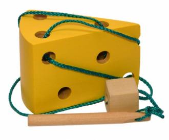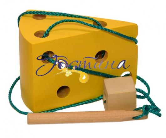 Захоплююча дерев'яна шнурівка «Сир», за допомогою якої, дитина навчитися управляти своїми ручками і координувати рухи.