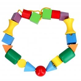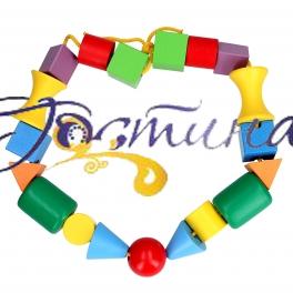 На міцний шнурок необхідно нанизати дерев'яні кольорові деталі. Всього в наборі - 19 фігурок з отворами для нанизування. Проста і надійна конструкція цієї іграшки буде довгі роки служити дитині. Для дітей від 1,5 років. Матеріал - деревина, екофарби. Розмір деталей - від 2,5х2,5х2,5см до 4х2,5х2,5см. Іграшка - шнурівка покращує сенсомоторную координацію рухів, удосконалює координацію системи «око-рука», гнучкість кисті, окомір, сприйняття кольорів, посидючість, концентрацію уваги. Шнурівка допоможе підготувати ручку дитини до письма, сприяє розвитку мови.