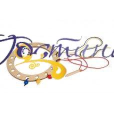 шнурівка кільце Шнурівка споспобствует розвитку дрібної Мутріку дитини. Ниточки трьох різних кольорів дозволяють створювати різні комбінації кольорів і геометричні форми. Діаметр кільця 27 см