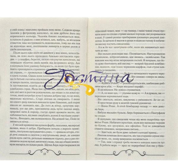 Якби ж цукерки й шоколадки жінки, чиє волосся пахне вітрами далеких країв, не були такими смачними! Якби вона не вміла вгадувати, чого саме потребує кожен, хто заходить до її крамнички! Тоді у цьому містечку не сталося б стільки драматичних подій...