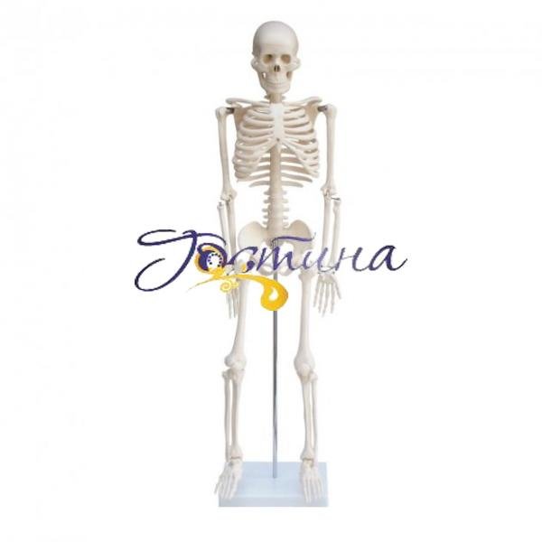 Скелет використовується в кабінеті біології загальноосвітнього навчального закладу під час вивчення розділу "Людина". Модель демонструє базовий кістковий опорно-руховий апарат людини. Кінцівки кріпляться на гнучкій основі.